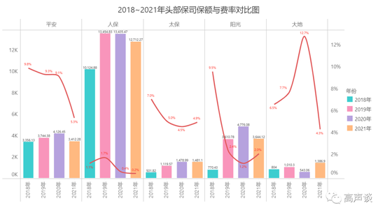 我们知道,我国保证险头部效应十分明显,平安、人保、太保、阳光、大地5家保司的市场占比始终在60%以上,我们将5家保司近4年保费及增长情况对比分析如下: