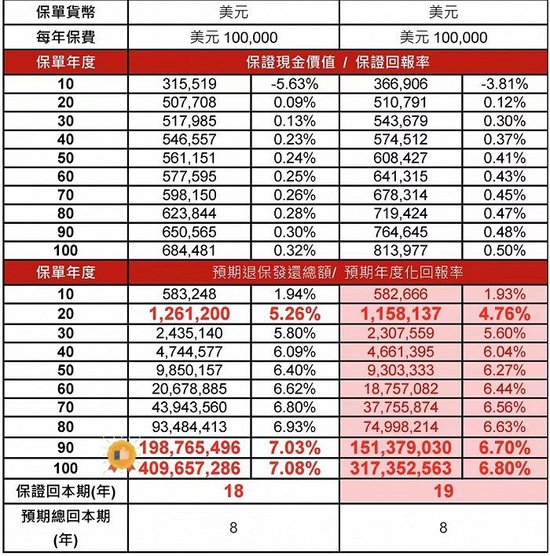 界面新闻从香港友邦保险代理人处获取的热销产品计划书中发现,和内地流行的增额寿险类似,香港储蓄产品的保额和现金价值也会随着时间的推移不断增长,并且可以通过部分退保或全部退保等功能实现资金的灵活性。