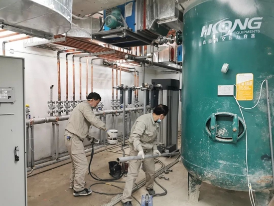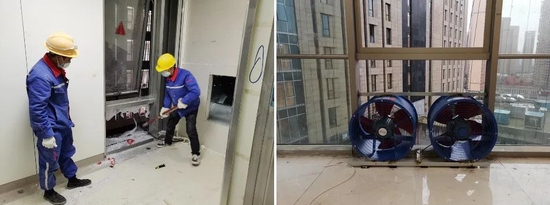 工人砸碎新安装好的玻璃幕墙改造负压送风系统