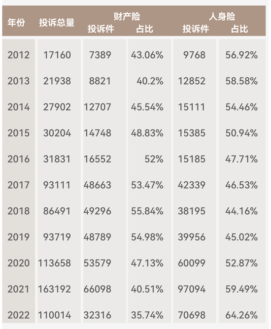 这种增长幅度,远远超出保费的增幅。2012年我国保费收入为1.55万亿元,2022年为4.69万亿元,增幅为3倍,远低于保险投诉的增幅。