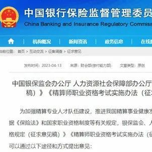 近日,银保监会、人社部就《精算师职业资格规定(征求意见稿)》《精算师职业资格考试实施办法(征求意见稿)》向社会公开征求意见。