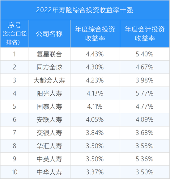 2022年寿险公司投资收益率总榜