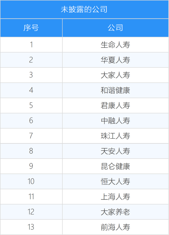 注2:以下13家公司未披露2022年4季度偿付能力报告,无法获取投资业绩数据
