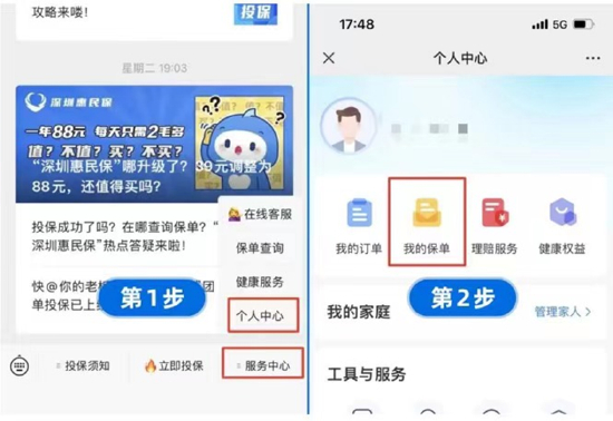 答:【个人投保查询】关注“深圳惠民保”微信公众号,点击菜单栏“服务中心”→“个人中心”→“我的保单”即可查询。
