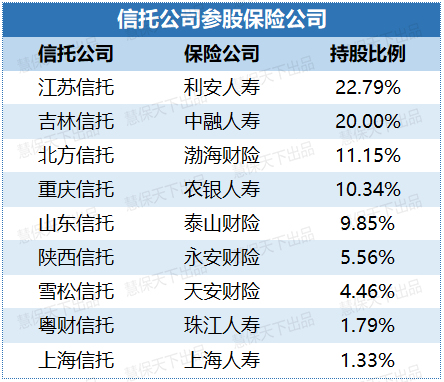直面综合财富管理市场,信保合作深化至股权层面:8保险机构持股或控股信托公司,9信托公司参股保险机构