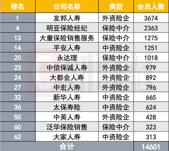 看点一:外资险企领衔,友邦人寿、中信保诚等5家公司MDRT人力占比近半