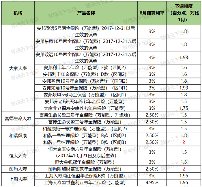 从今年上半年来看,市场上68家寿险公司共1585款万能险产品中,有52家公司共674款产品上半年结算利率下调,将近半壁江山。