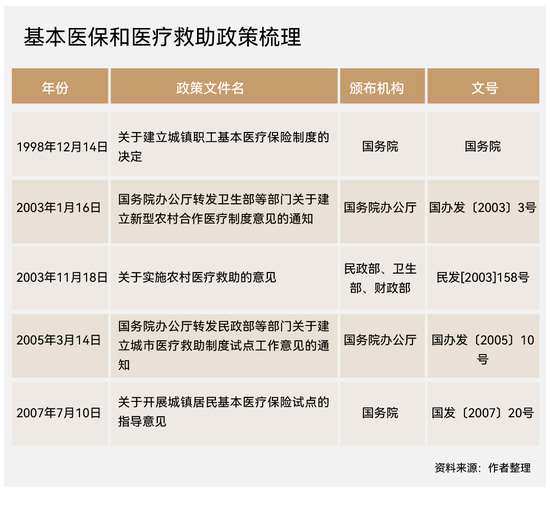 1998年11月18日,经国务院批准设立保监会,履行保险监管职能,内设人身保险监管部。承办对人身保险公司的监管工作。12月14日,《国务院关于建立城镇职工基本医疗保险制度的决定》(国发〔1998〕44号)出台,新的城镇职工基本医保制度建立,这标志着实行40多年的公费、劳保医疗保障制度被新的社会医疗保险制度所取代。城镇职工基本医保指导思想是“保基本、低水平”,设定起付线、封顶线、报销比例和基本医保目录,个人有一定的医疗费用负担。