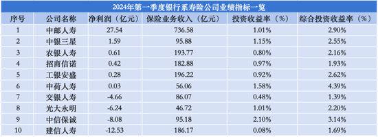 其中,最为值得关注的是中邮人寿。从“亏损王”到一季度最赚钱的银行系险企,中邮人寿今年一季度净利润和保费规模双双增长,而2023年中邮人寿的一年亏损超过百亿元。