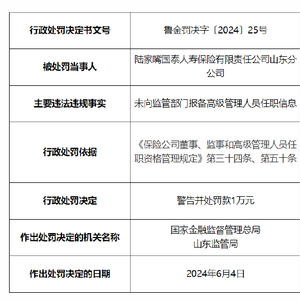 6月7日金融一线消息,国家金融监督管理总局山东监管局行政处罚信息公开表显示,因未向监管部门报备高级管理人员任职信息,陆家嘴国泰人寿保险有限责任公司山东分公司被警告并处以罚款1万元。