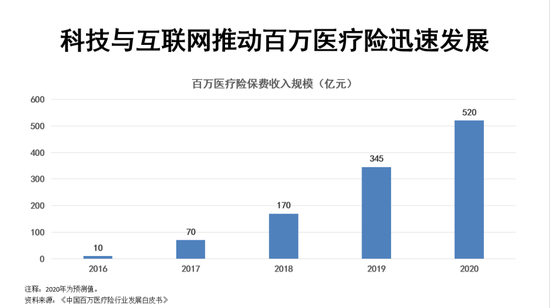 2019年,百万医疗保费收入规模345亿,2020年大概达520亿,该产品的普及提升了民众的健康保障意识。