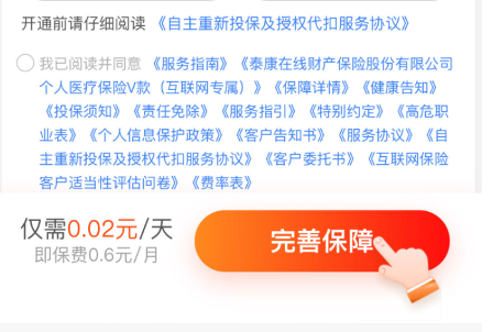 另外,部分保险产品的实际保费可能并非0.6元/月。记者在实测过程中虽然没有实际购买上述产品,但一名在今年6月购买过“星火保”某款产品的投资者王婷(化名)告诉记者,她购买的产品宣称0.6元/月,实际每月扣费14元,0.6元仅是首月优惠。