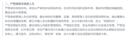 加强监管防范风险可以总结为“严准入”“严监管”“治违法”“防范化解风险”的全链路监管,值得一提的是,对风险大、不具备持续经营能力的保险机构,收缴金融许可证,依法进入破产清算程序。