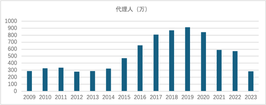 个人销售人员数量一直在下降,但从9月底的上市公司财务报表中可以看到,几家头部公司的代理人数量反而是上升的,这部分应该就是经代公司业务员的反流。经代公司开始大力调整财务模型,如修改基本法:减少管理津贴投入,减少血缘关系的管理收入等等手段。
