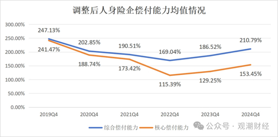 2024年4季度上述两个指标进一步企稳。综合偿付能力和核心偿付能力均值分别为210.79%、153.45%,较2023年同比均上升约24个百分点。