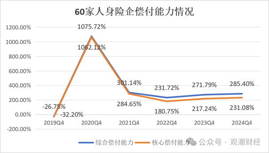 2024年4季度60家人身险企偿付能力均值稳步回升。