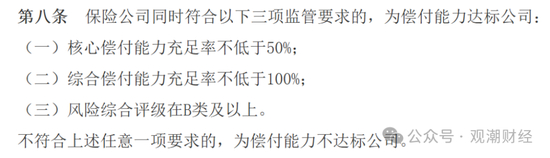 2021年,中国银行保险监督管理委员会令发布的《保险公司偿付能力管理规定》中规定,风险综合评级不达B类的险企为偿付能力不达标公司。