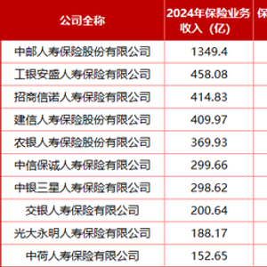 60家非上市寿险机构2024年第四季度偿付能力报告均已出炉,其中“银行系”险企势头堪称凶猛。保险业务收入“TOP10”当中有6家都是银行系险企,净利润“TOP10”当中有5家是“银行系”险企。