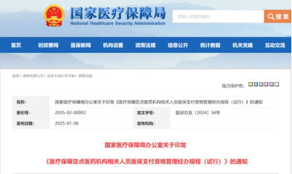 随后,在今年1月8日,国家医保局又印发了《医疗保障定点医药机构相关人员医保支付资格管理经办规程(试行)》,其中指出:省级医疗保障经办机构在本规程基础上,结合本省实施细则,指导统筹地区医疗保障经办机构开展相关人员医保支付资格管理工作。