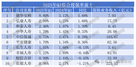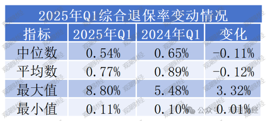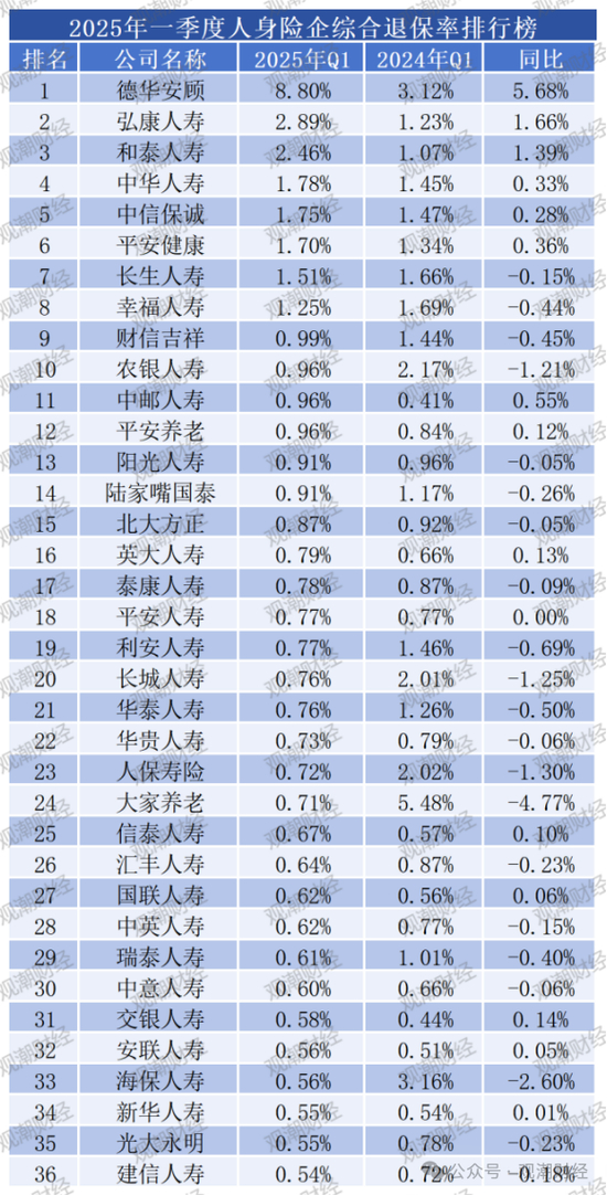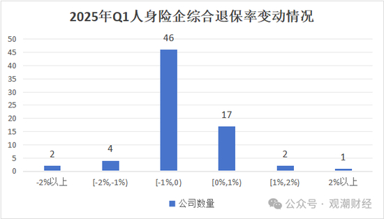 另外,2025年Q1综合退保率高于3%的人身险企仅1家,去年同期有3家,占比4%。
