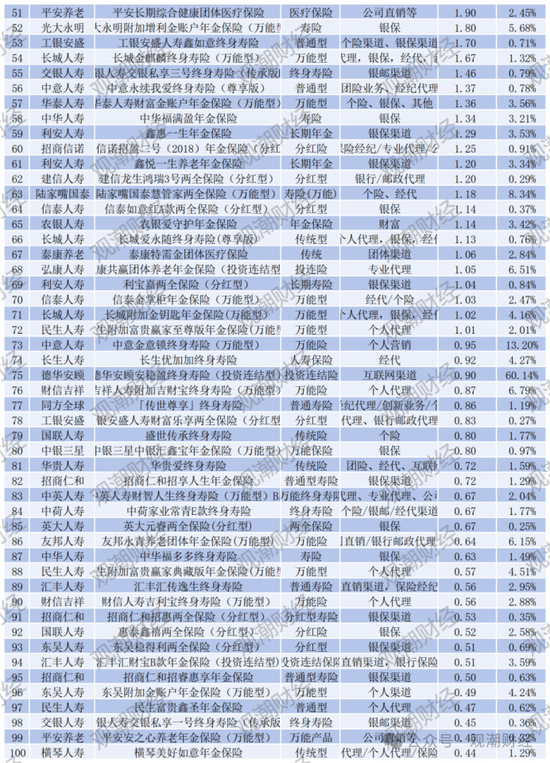此外,涉及直销渠道、互联网渠道、中介渠道及团体渠道的产品分别有25款、9款、50款、10款,还有3款是停售产品,皆出自安联人寿。