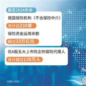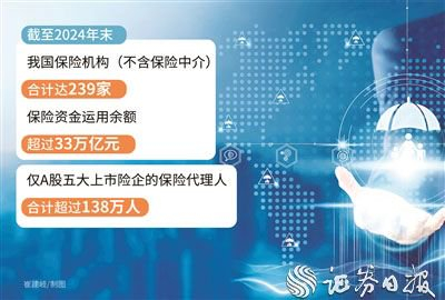 自改革开放后,我国保险业快速发展,目前已跻身全球第二大保险市场。截至2024年末,我国保险机构(不含保险中介)合计达239家,保险资金运用余额超过33万亿元;仅A股五大上市险企的保险代理人合计超过138万人。