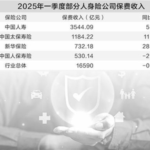 金融监管总局最新公布的数据显示,一季度人身险公司原保险保费收入为16590亿元,较去年同期微降约0.3%。业内人士称,行业新单保费下滑明显。