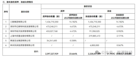 除此之外,幸福人寿还有部分股权处于质押、冻结的异常状态,其中质押股权合计占比23.664%,冻结股权合计占比21.993%股权,均为社团法人股。详情请见(《副总跳级任董事长再添一例!何六艺拟掌舵,幸福人寿遗留问题挑战重重》)。