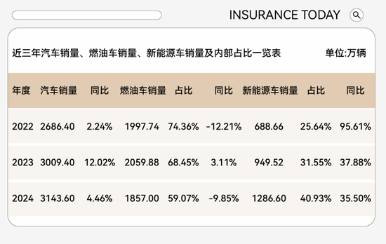 ①燃油车发展陷入市场困局。传统燃油车销量增长已陷入较大幅度负增长。与之对应的燃油车保费规模增长也将逐步见顶,新车保费增量愈来愈小。再结合现有市场竞争和车险综改实际,整体来看,燃油车保费增速已然见顶,市场陷入激烈的存量博弈与价格战泥潭,增长乏力且利润空间持续承压。