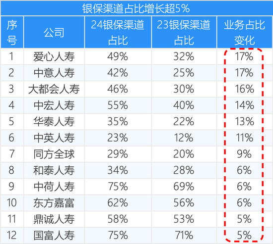 12家银保渠道占比增长超5个百分点