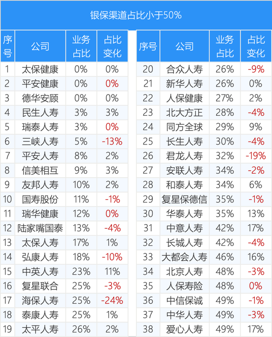 39家银保渠道占比不到50%