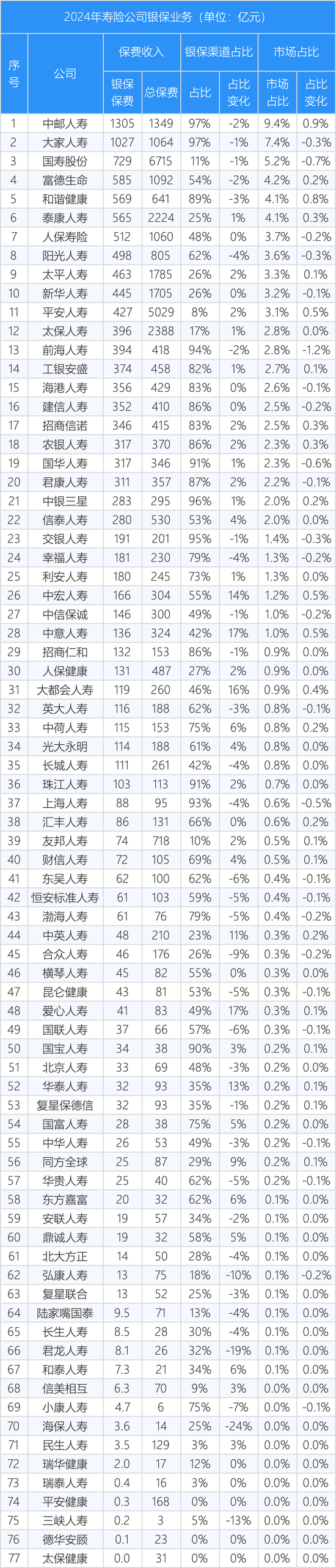 中邮、大家、国寿占据前三,谁是寿险银保渠道“江湖”真正王者?12家保司占比增长超5%