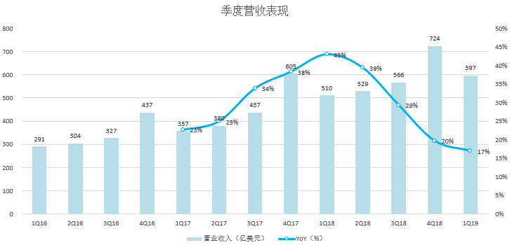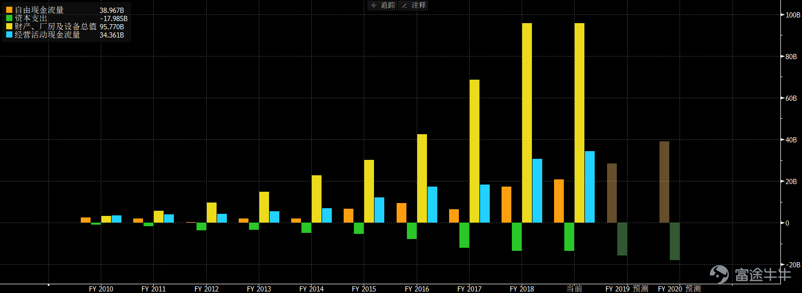 净利润也因此在近几个季度持续创出历史新高,2017年全年净利30亿美元,2018年全年净利100亿美元,2019Q1净利35.6亿美元,同比增100%。