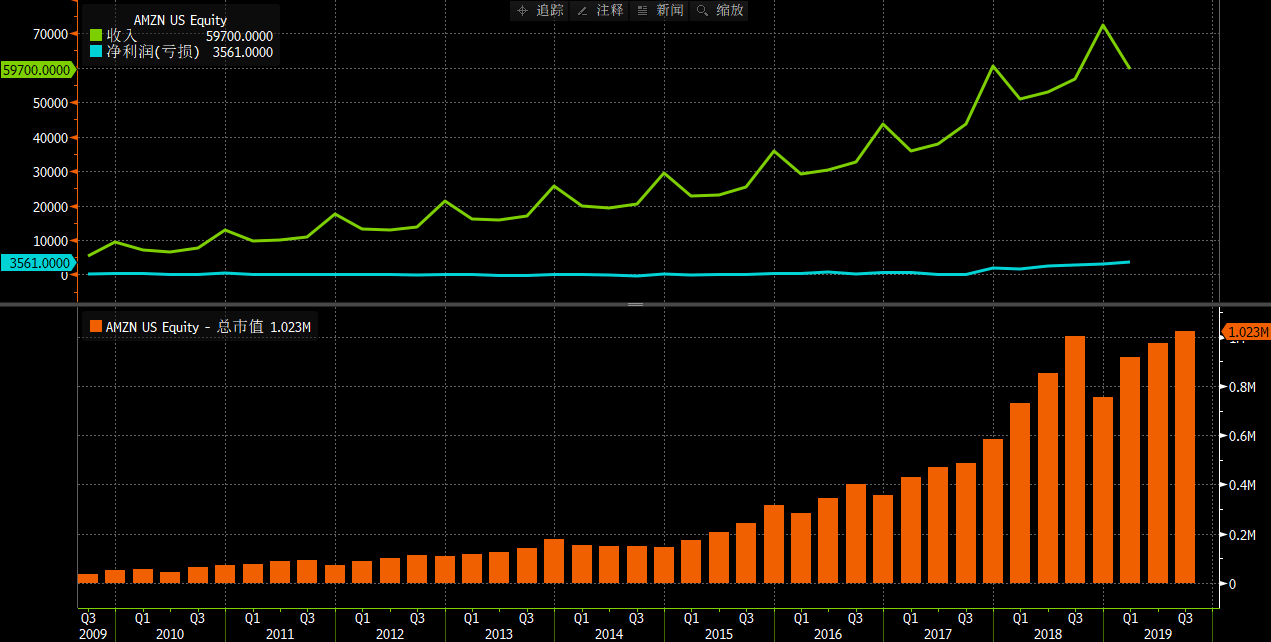 所以,市场对于亚马逊的注意力已经逐渐从收入增长转向了盈利增长,此时股价虽然没有业务爆发期那么猛,但只要业绩稳步提升,很可能在消化估值之余持续带动股价稳步向上。
