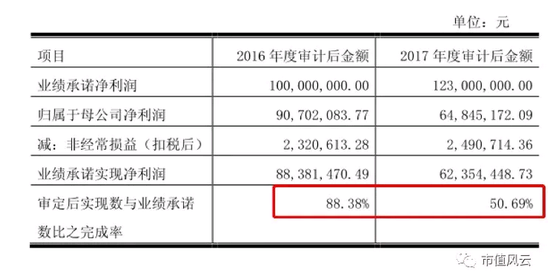 2018年4月26日,百花村发布关于重大资产重组2017年度业绩承诺完成情况的说明及致歉公告称,华威医药2017年业绩承诺未能兑现,实际净利润完成率仅为50.69%,而2016年和2017年两年累计净利润完成率仅为67.59%。