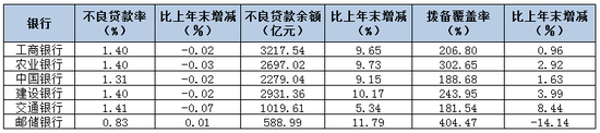 虽然邮储银行不良贷款率较上年末上升0.01个百分点,但是不良率在国有大行中最低,为0.83%;不良率最高的为交行,数据为1.41%。