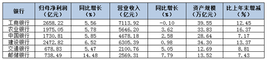 从归母净利润增速看,邮储银行以14.48%位居榜首,其次是建行、中行、农行、工行、交行,分别为6.52%、5.85%、5.78%、5.56%、5.47%。