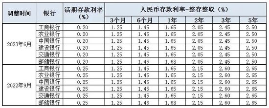 此外,六大行的三个月、六个月、一年期整存整取定期存款利率较此前没有进行调整。