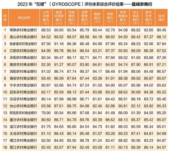 近日,中国银行业协会发布了2023年度商业银行稳健发展能力“陀螺”(GYROSCOPE)评价结果。