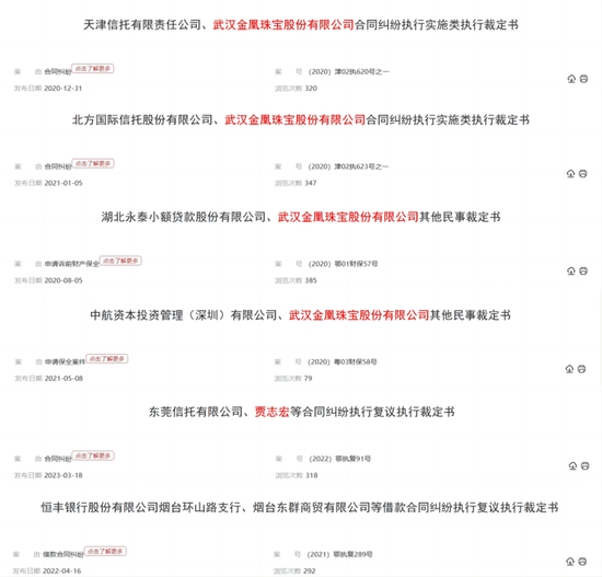 中国执行信息公开网显示,2020年以来,金凰珠宝与贾志宏已多次被执行,贾志宏多次被限消。截至目前,金凰珠宝累计已存在45条被执行记录。