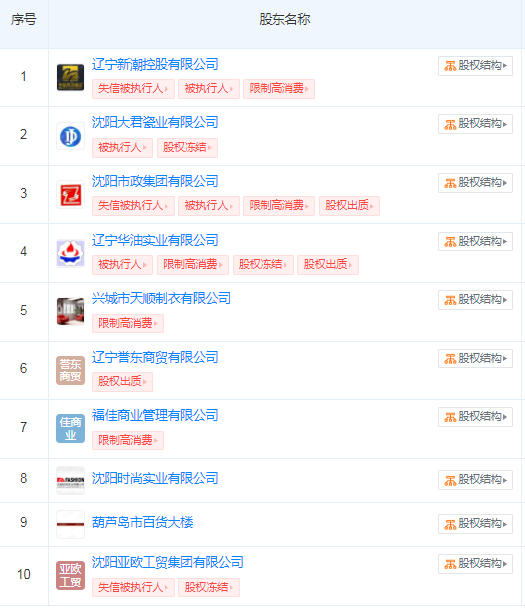 比如,葫芦岛银行现股东辽宁新潮控股有限公司、沈阳市政集团有限公司均被列为失信被执行人、被执行人以及被限制高消费;沈阳大君瓷业有限公司、辽宁华油实业有限公司均被列为被执行人等;沈阳亚欧工贸集团有限公司被列为失信被执行人等。