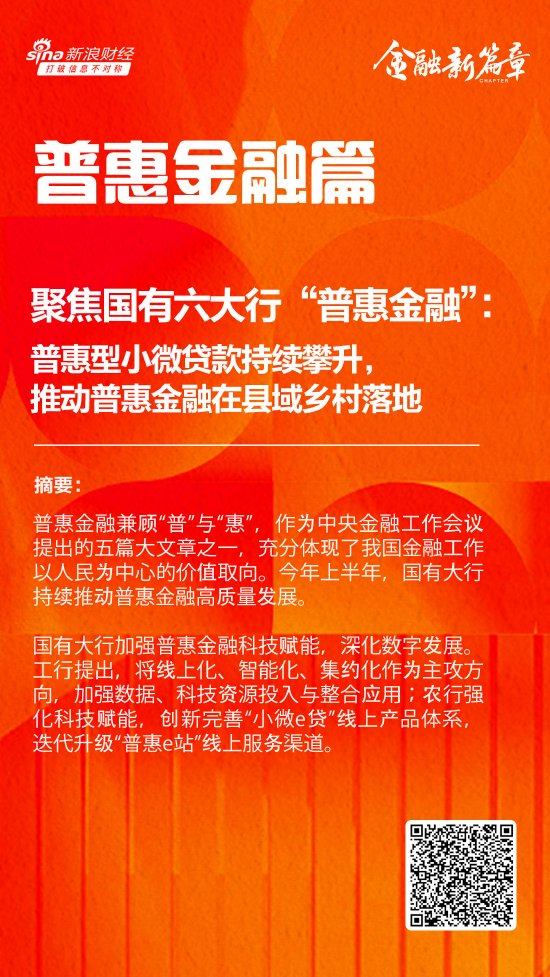 同时,国有大行加强普惠金融科技赋能,深化数字发展。工商银行提出,将线上化、智能化、集约化作为普惠金融主攻方向,加强数据、科技资源投入与整合应用;农业银行强化科技赋能,创新完善“小微e贷”线上产品体系,迭代升级“普惠e站”线上服务渠道。