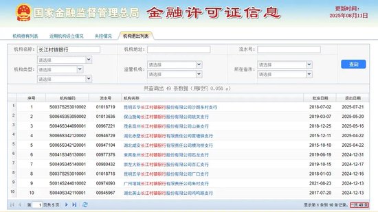 而从国家金融监管局披露的金融许可证信息来看,2023年以来,已有49家长江村镇银行网点关闭,存量优化步伐加快。