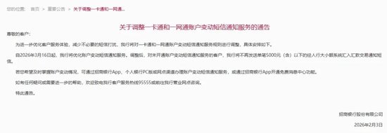 近日,招商银行宣布,对一卡通和一网通账户变动短信通知服务进行优化调整,引发市场广泛关注。