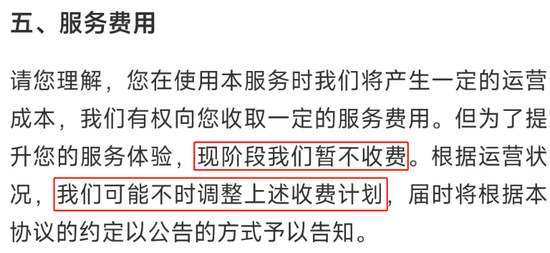 新浪金融曝光台阅读《蚂蚁宠物平台服务协议》发现,协议中对 “服务费用”的解释不够明确。协议只强调蚂蚁宠物平台有权收取一定的服务费用,但又不说明收取多少。协议还提到“现阶段不收费。根据运营状况,可能不时调整收费计划。” 所以,什么时候会收费,当下也无法得知。