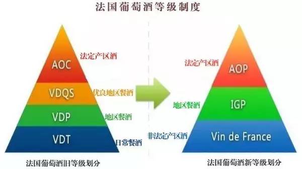 看葡萄酒的分级:总体上法国葡萄酒的品质随着级别的提高而越好。