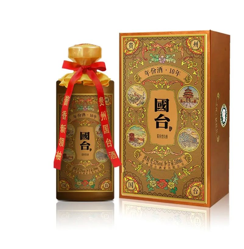 工艺上,国台十年嫡传酱酒工艺正宗大曲酱香型白酒,端午踩曲、重阳下沙、九次蒸煮、八次发酵、七次取酒,储足年份,不卖新酒,至少五年方能出厂。