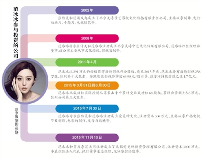 除了在一级市场入股拟挂牌公司,范冰冰还以自己的名义或通过家人设立公司。