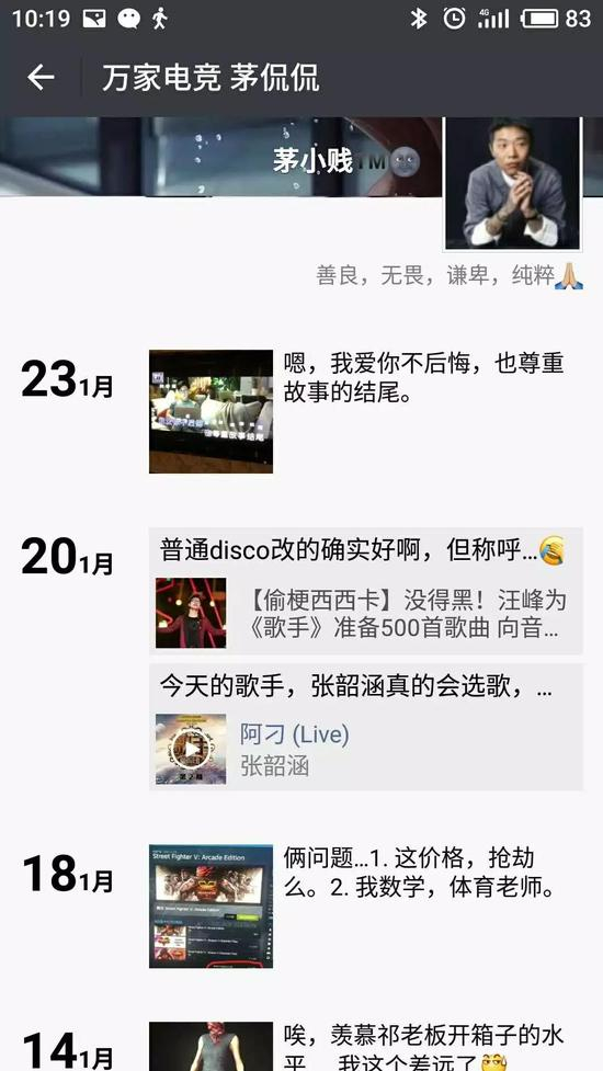 茅侃侃的朋友圈定格在了1月23日,“嗯,我爱你不后悔,也尊重故事的结尾。”配图是《前任3》的电影主题曲画面。
