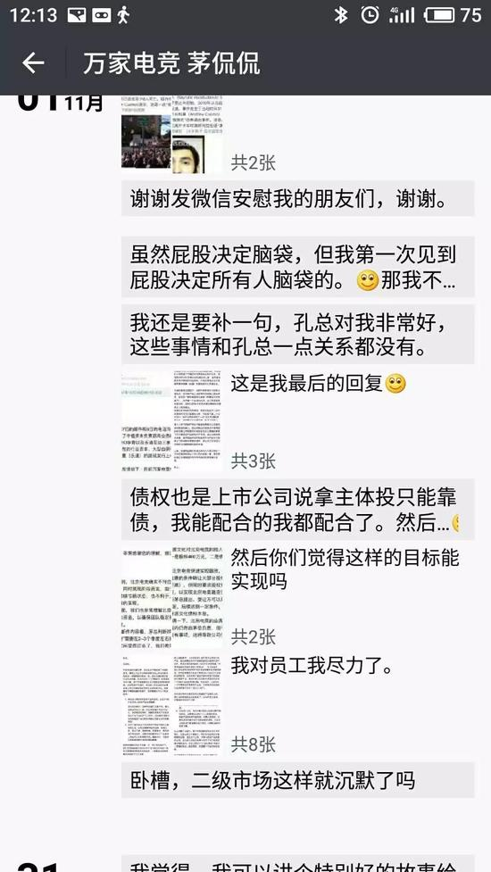 记者第一次和茅侃侃交流是在2017年11月初,在那之前记者其实已经获知,万家电竞不能发出工资,茅侃侃作为负责人,自身也有需要承担的责任。但从员工的态度上来看,茅侃侃似乎是他们“同一阵线的”。